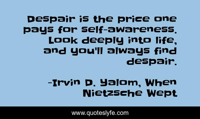 "Irvin D. Yalom, When Nietzsche Wept Quotes." Quoteslyfe.com, 2025. Mon. 08 Dec. 2025. <https://www.quoteslyfe.com/quote/Despair-is-the-price-one-pays-for-2503>.