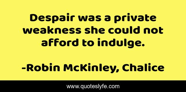 "Robin McKinley, Chalice Quotes." Quoteslyfe.com, 2025. Sat. 06 Dec. 2025. <https://www.quoteslyfe.com/quote/Despair-was-a-private-weakness-she-could-104201>.