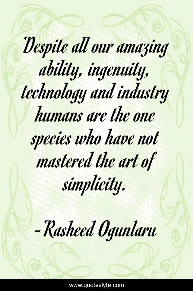 "Rasheed Ogunlaru Quotes." Quoteslyfe.com, 2025. Mon. 08 Dec. 2025. <https://www.quoteslyfe.com/quote/Despite-all-our-amazing-ability-ingenuity-technology-196632>.