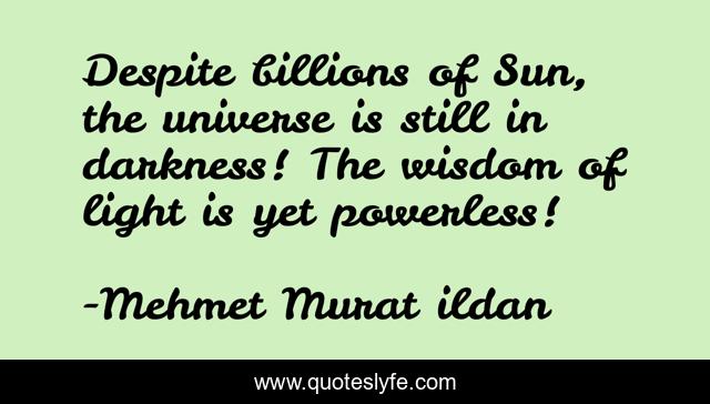 This page presents the quote "Despite billions of Sun, the universe is still in darkness! The wisdom of light is yet powerless!". Author of this quote is Mehmet Murat ildan. .