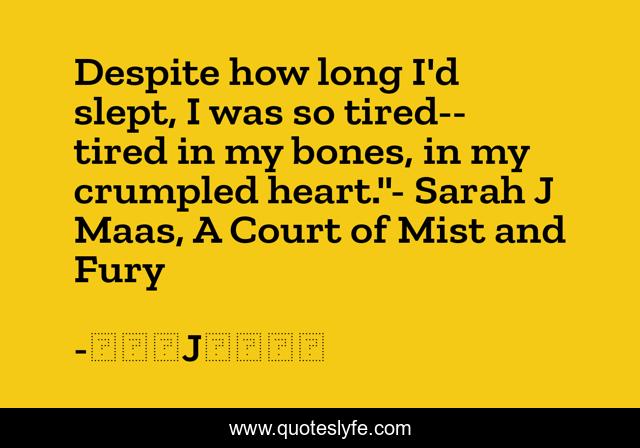 This page presents the quote "Despite how long I'd slept, I was so tired--tired in my bones, in my crumpled heart."- Sarah J Maas, A Court of Mist and Fury". Author of this quote is サラ・J・マース. This quote is about sadness, depression, tiredness,.