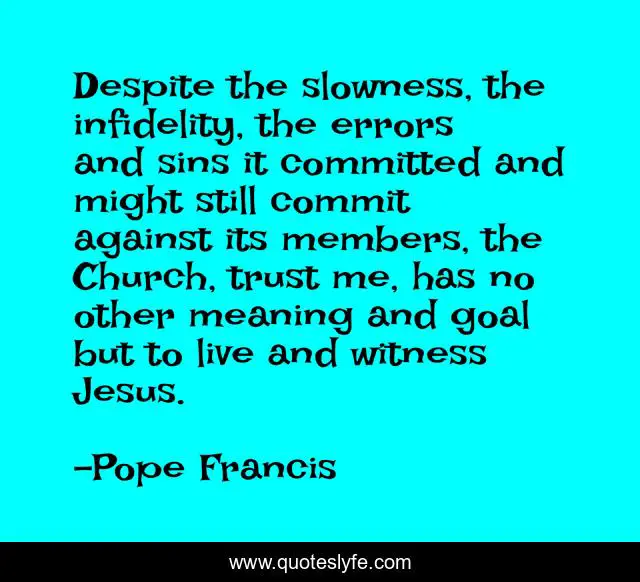 "Pope Francis Quotes." Quoteslyfe.com, 2025. Fri. 05 Dec. 2025. <https://www.quoteslyfe.com/quote/Despite-the-slowness-the-infidelity-the-errors-315337>.