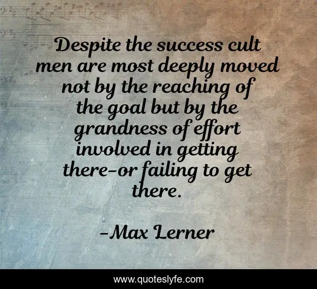 This page presents the quote "Despite the success cult men are most deeply moved not by the reaching of the goal but by the grandness of effort involved in getting there-or failing to get there.". Author of this quote is Max Lerner. .