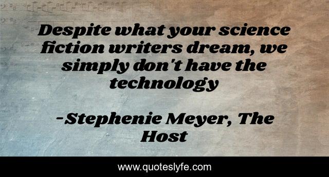 This page presents the quote "Despite what your science fiction writers dream, we simply don't have the technology". Author of this quote is Stephenie Meyer, The Host. .