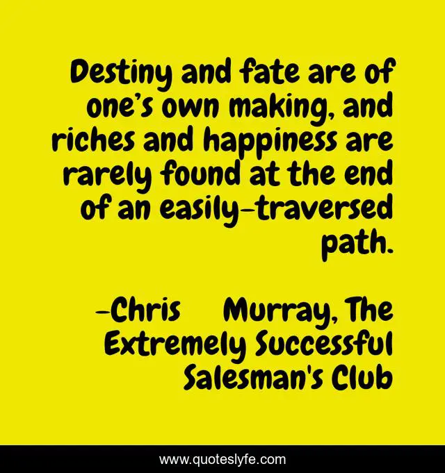 "Chris Murray, The Extremely Successful Salesman's Club Quotes." Quoteslyfe.com, 2026. Fri. 02 Jan. 2026. <https://www.quoteslyfe.com/quote/Destiny-and-fate-are-of-one-s-109659>.