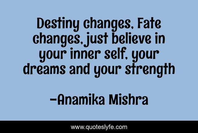 This page presents the quote "Destiny changes, Fate changes, just believe in your inner self, your dreams and your strength". Author of this quote is Anamika Mishra. This quote is about life, destiny, fate, luck,.