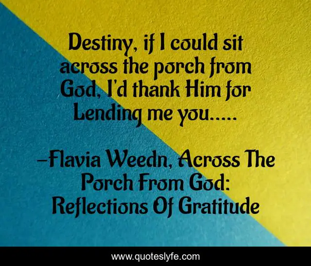 "Flavia Weedn, Across The Porch From God: Reflections Of Gratitude Quotes." Quoteslyfe.com, 2025. Fri. 05 Dec. 2025. <https://www.quoteslyfe.com/quote/Destiny-if-I-could-sit-across-the-21264>.