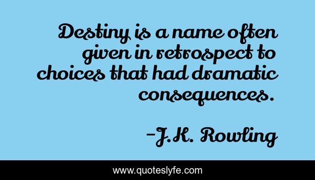 This page presents the quote "Destiny is a name often given in retrospect to choices that had dramatic consequences.". Author of this quote is J.K. Rowling. This quote is about destiny, inspiration,.