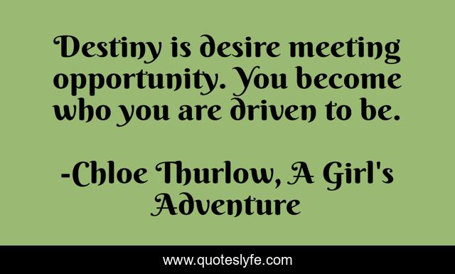 "Chloe Thurlow, A Girl's Adventure Quotes." Quoteslyfe.com, 2025. Sun. 07 Dec. 2025. <https://www.quoteslyfe.com/quote/Destiny-is-desire-meeting-opportunity-You-become-107096>.