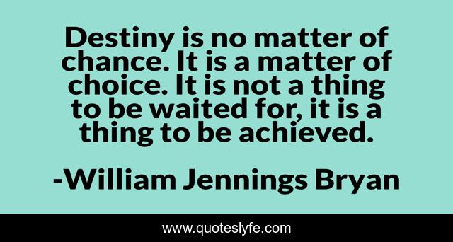 "William Jennings Bryan Quotes." Quoteslyfe.com, 2025. Mon. 08 Dec. 2025. <https://www.quoteslyfe.com/quote/Destiny-is-no-matter-of-chance-It-305479>.