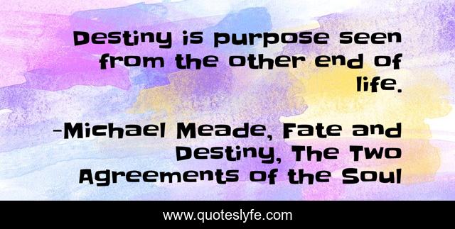 "Michael Meade, Fate and Destiny, The Two Agreements of the Soul Quotes." Quoteslyfe.com, 2025. Sun. 07 Dec. 2025. <https://www.quoteslyfe.com/quote/Destiny-is-purpose-seen-from-the-other-13353>.