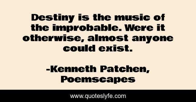 This page presents the quote "Destiny is the music of the improbable. Were it otherwise, almost anyone could exist.". Author of this quote is Kenneth Patchen, Poemscapes. This quote is about existence, music, destiny, improbable,.