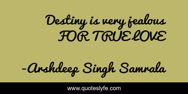 "Arshdeep Singh Samrala Quotes." Quoteslyfe.com, 2025. Fri. 05 Dec. 2025. <https://www.quoteslyfe.com/quote/Destiny-is-very-jealous-FOR-TRUE-LOVE-197632>.