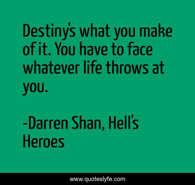 This page presents the quote "Destiny's what you make of it. You have to face whatever life throws at you.". Author of this quote is Darren Shan, Hell's Heroes. This quote is about life, destiny, bravery,.