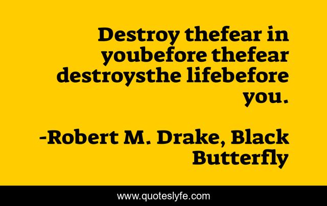 "Robert M. Drake, Black Butterfly Quotes." Quoteslyfe.com, 2025. Fri. 05 Dec. 2025. <https://www.quoteslyfe.com/quote/Destroy-thefear-in-youbefore-thefear-destroysthe-lifebefore-45983>.