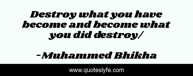 "Muhammed Bhikha Quotes." Quoteslyfe.com, 2025. Sat. 06 Dec. 2025. <https://www.quoteslyfe.com/quote/Destroy-what-you-have-become-and-become-25864>.