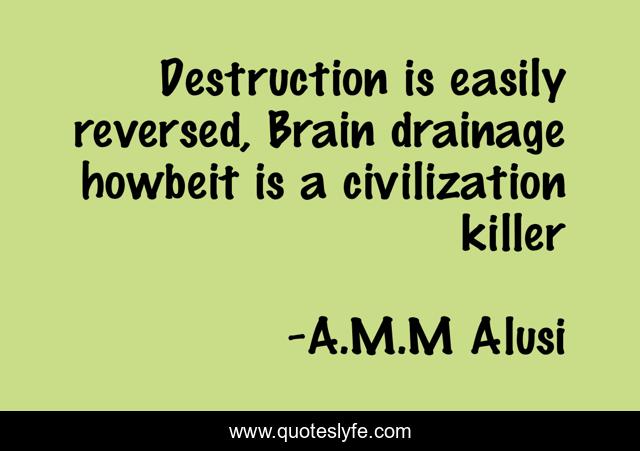 "A.M.M Alusi Quotes." Quoteslyfe.com, 2025. Sat. 06 Dec. 2025. <https://www.quoteslyfe.com/quote/Destruction-is-easily-reversed-Brain-drainage-howbeit-227390>.