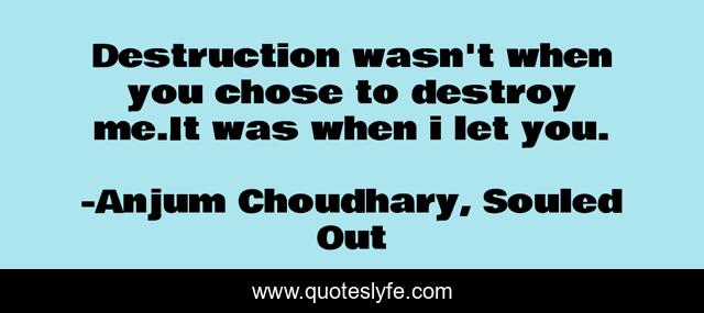 "Anjum Choudhary, Souled Out Quotes." Quoteslyfe.com, 2025. Fri. 05 Dec. 2025. <https://www.quoteslyfe.com/quote/Destruction-wasn-t-when-you-chose-to-47611>.