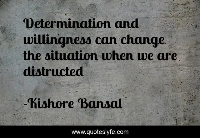 This page presents the quote "Determination and willingness can change the situation when we are distructed". Author of this quote is Kishore Bansal. This quote is about situation, determination, change, willingness, distructed,.