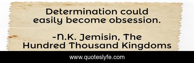 This page presents the quote "Determination could easily become obsession.". Author of this quote is N.K. Jemisin, The Hundred Thousand Kingdoms. This quote is about determination, obsession,.