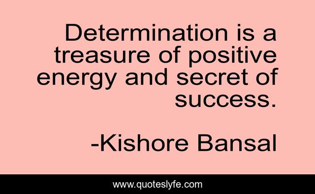 This page presents the quote "Determination is a treasure of positive energy and secret of success.". Author of this quote is Kishore Bansal. This quote is about determination, positive-energy, treasure, secret-success,.