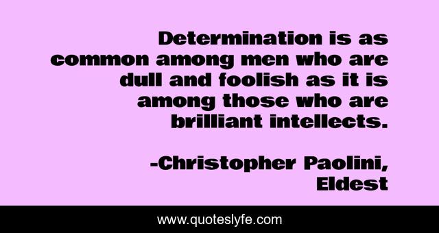 This page presents the quote "Determination is as common among men who are dull and foolish as it is among those who are brilliant intellects.". Author of this quote is Christopher Paolini, Eldest. .