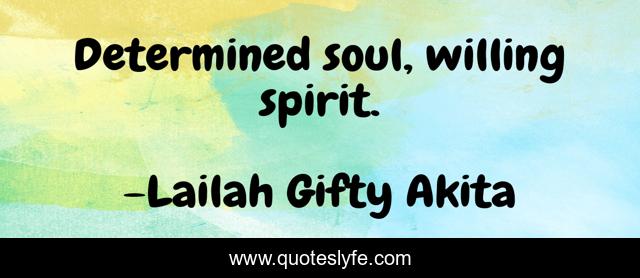 This page presents the quote "Determined soul, willing spirit.". Author of this quote is Lailah Gifty Akita. This quote is about confidence, determined-spirit, positive, motivational, soul, wisdom-of-lailah-gifty-akita, optimistic,.