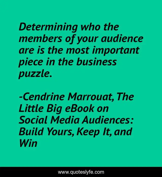 "Cendrine Marrouat, The Little Big eBook on Social Media Audiences: Build Yours, Keep It, and Win Quotes." Quoteslyfe.com, 2025. Sat. 06 Dec. 2025. <https://www.quoteslyfe.com/quote/Determining-who-the-members-of-your-audience-236978>.