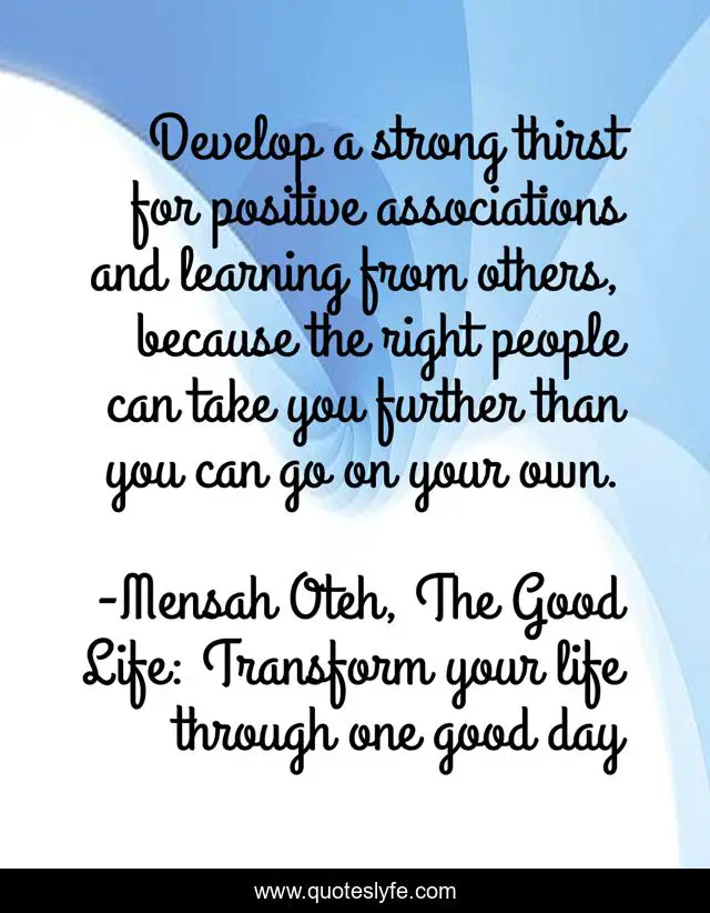 "Mensah Oteh, The Good Life: Transform your life through one good day Quotes." Quoteslyfe.com, 2025. Fri. 05 Dec. 2025. <https://www.quoteslyfe.com/quote/Develop-a-strong-thirst-for-positive-associations-15871>.