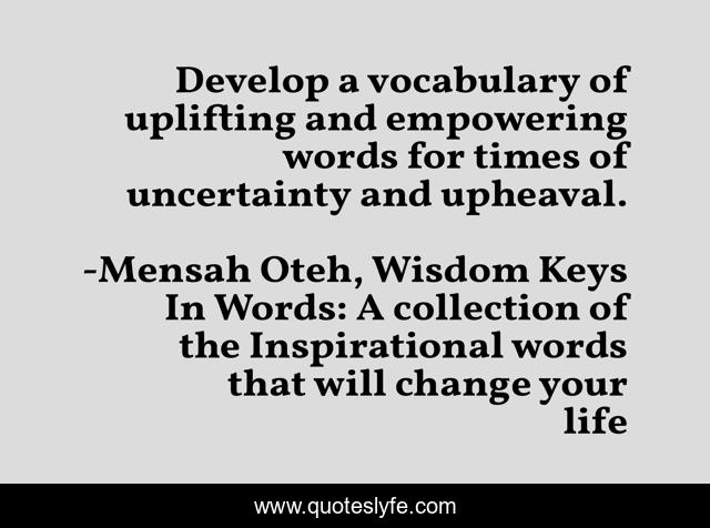 "Mensah Oteh, Wisdom Keys In Words: A collection of the Inspirational words that will change your life Quotes." Quoteslyfe.com, 2025. Fri. 05 Dec. 2025. <https://www.quoteslyfe.com/quote/Develop-a-vocabulary-of-uplifting-and-empowering-48897>.