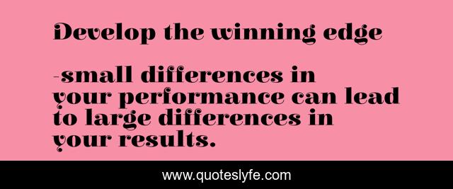 This page presents the quote "Develop the winning edge". Author of this quote is small differences in your performance can lead to large differences in your results.. .