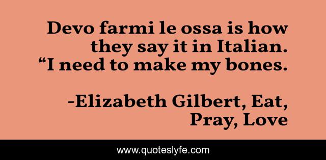 This page presents the quote "Devo farmi le ossa is how they say it in Italian. “I need to make my bones.". Author of this quote is Elizabeth Gilbert, Eat, Pray, Love. .