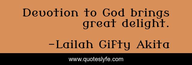 This page presents the quote "Devotion to God brings great delight.". Author of this quote is Lailah Gifty Akita. This quote is about delight, god, seeking-god, spiritual, happiness,.