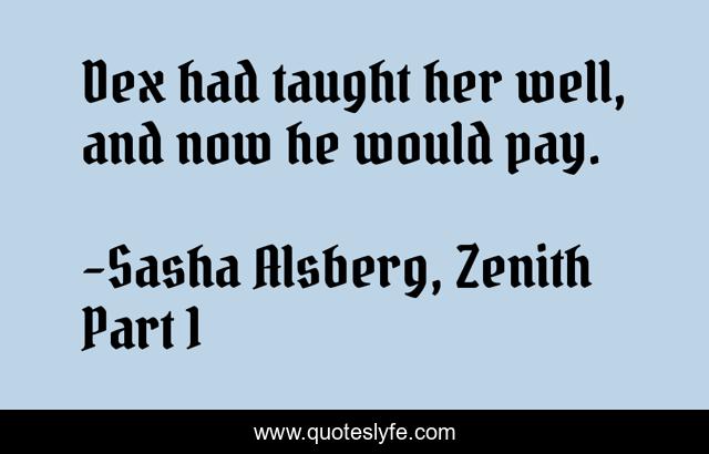 "Sasha Alsberg, Zenith Part 1 Quotes." Quoteslyfe.com, 2025. Fri. 05 Dec. 2025. <https://www.quoteslyfe.com/quote/Dex-had-taught-her-well-and-now-201507>.