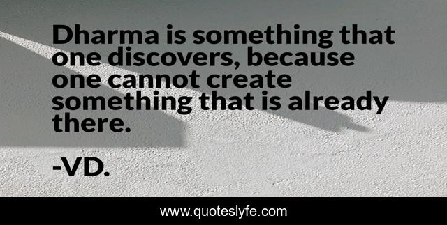 This page presents the quote "Dharma is something that one discovers, because one cannot create something that is already there.". Author of this quote is VD.. This quote is about dharma, discovery, inspiration,.