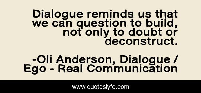 This page presents the quote "Dialogue reminds us that we can question to build, not only to doubt or deconstruct.". Author of this quote is Oli Anderson, Dialogue / Ego - Real Communication. This quote is about dialogue, collaboration, organizational-leadership, creativity, doubt, growth,.