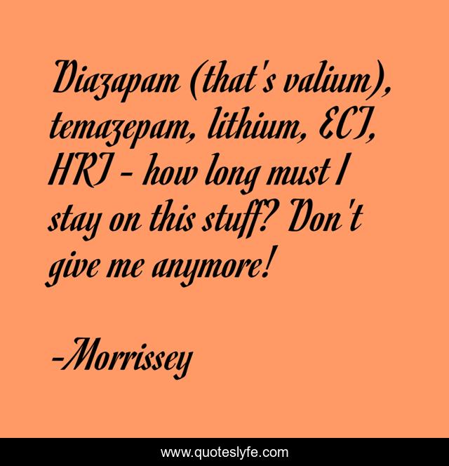 "Morrissey Quotes." Quoteslyfe.com, 2025. Mon. 08 Dec. 2025. <https://www.quoteslyfe.com/quote/Diazapam-that-s-valium-temazepam-lithium-ECT-78946>.