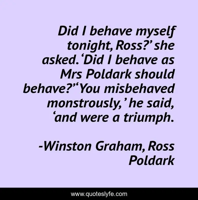 "Winston Graham, Ross Poldark Quotes." Quoteslyfe.com, 2025. Sat. 06 Dec. 2025. <https://www.quoteslyfe.com/quote/Did-I-behave-myself-tonight-Ross-she-224694>.