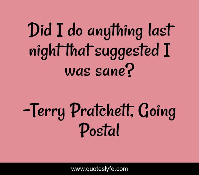 "Terry Pratchett, Going Postal Quotes." Quoteslyfe.com, 2025. Fri. 05 Dec. 2025. <https://www.quoteslyfe.com/quote/Did-I-do-anything-last-night-that-232605>.