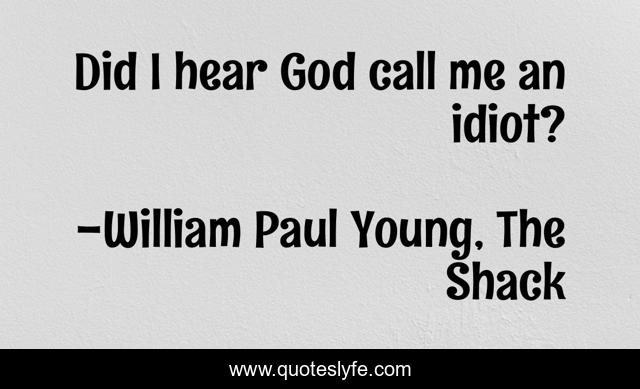This page presents the quote "Did I hear God call me an idiot?". Author of this quote is William Paul Young, The Shack. This quote is about idiot, god, humor,.