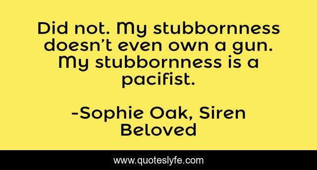 This page presents the quote "Did not. My stubbornness doesn’t even own a gun. My stubbornness is a pacifist.". Author of this quote is Sophie Oak, Siren Beloved. This quote is about erotica, siren-beloved, sophie-oak,.