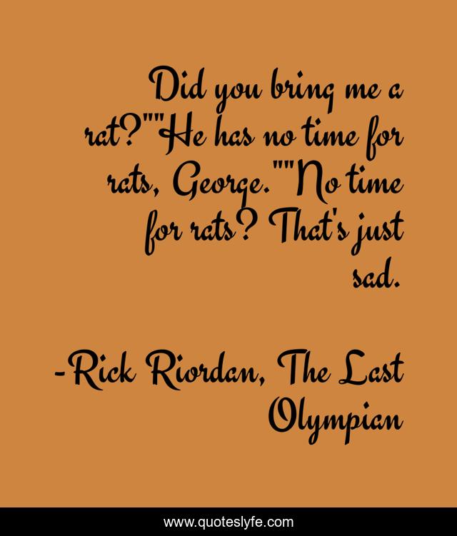 This page presents the quote "Did you bring me a rat?""He has no time for rats, George.""No time for rats? That's just sad.". Author of this quote is Rick Riordan, The Last Olympian. This quote is about mythology, humour,.