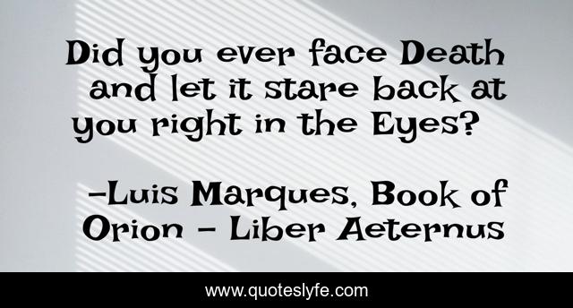"Luis Marques, Book of Orion - Liber Aeternus Quotes." Quoteslyfe.com, 2025. Sun. 07 Dec. 2025. <https://www.quoteslyfe.com/quote/Did-you-ever-face-Death-and-let-134051>.