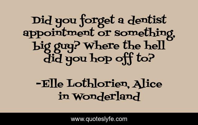 "Elle Lothlorien, Alice in Wonderland Quotes." Quoteslyfe.com, 2025. Mon. 08 Dec. 2025. <https://www.quoteslyfe.com/quote/Did-you-forget-a-dentist-appointment-or-155486>.