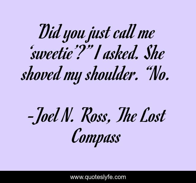"Joel N. Ross, The Lost Compass Quotes." Quoteslyfe.com, 2025. Fri. 05 Dec. 2025. <https://www.quoteslyfe.com/quote/Did-you-just-call-me-sweetie-I-41636>.