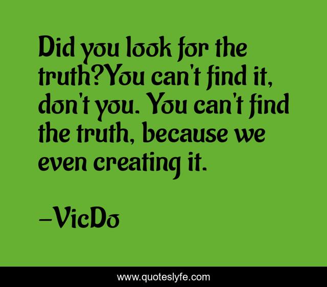 This page presents the quote "Did you look for the truth?You can't find it, don't you. You can't find the truth, because we even creating it.". Author of this quote is VicDo. This quote is about future, truth,.
