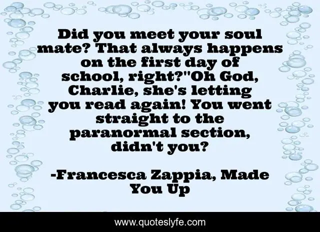 Did you meet your soul mate? That always happens on the first day of school, right?''Oh God, Charlie, she's letting you read again! You went straight to the paranormal section, didn't you?