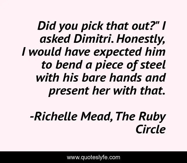 "Richelle Mead, The Ruby Circle Quotes." Quoteslyfe.com, 2025. Fri. 05 Dec. 2025. <https://www.quoteslyfe.com/quote/Did-you-pick-that-out-I-asked-76552>.