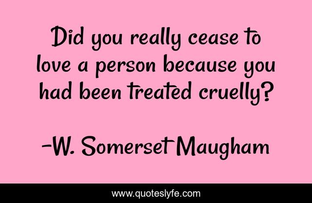 This page presents the quote "Did you really cease to love a person because you had been treated cruelly?". Author of this quote is W. Somerset Maugham. This quote is about grief, love, cruelty, affection,.