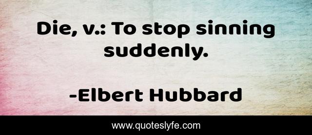 This page presents the quote "Die, v.: To stop sinning suddenly.". Author of this quote is Elbert Hubbard. This quote is about suddenly, die, stop,.